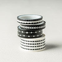 To finish off the background I have added a few strips of washi tape and some Tranquil Tide "ribbon" made with the Decorative Ribbon Border punch. The silver metallic thread is secured to the back of the typewriter using glue dots. I added a few more glue dots to secure the whole piece to the front of the card making it sit proud of the card, without using the height of dimensionals.