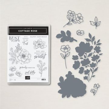 I adhered adhesive sheets to the Very Vanilla card to transform the dies in the Cottage Rose bundle into stickers to decorate the tag. Three strands of Linen Thread make the bow fuller, and to echo the gold head embossing I added a gold bow too! I wanted my two projects to feature some of the same elements; DSP, floral die cuts, tags and bows and I have managed that and although today's card is in keeping with my tutorial project they are totally different!