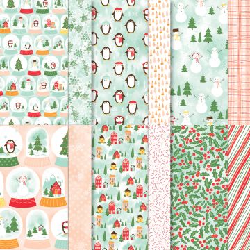 I would not have thought about creating a Christmas card using Petal Pink, but I was driven to use non-traditional colours by the pastel shades on the DSP. The snowflake pattern is both pretty and delicate and I enhanced it with some splattered Wink of Stella droplets. The images are super cute so, I've squished the sketch by reducing the height down to make a cute square card.