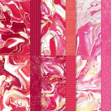 The luxurious papers have encouraged me to mix and match pinks and reds together, which is something I rarely do, and to also add some gold heat embossing. The gold foiling on the papers, the gold behind the postage stamps and the heat embossing all complement each other - it's all about the coordination!
